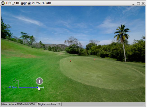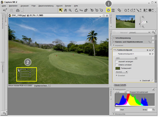 - Platzieren Sie den Farbkontrollpunkt auf dem Bildbereich mit Gras.