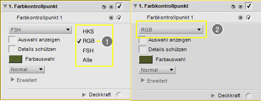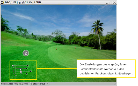 - Neben dem ursprünglichen Farbkontrollpunkt wird ein solcher mit den selben Einstellungen platziert.