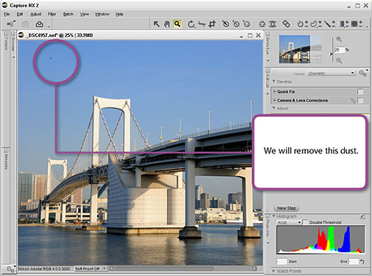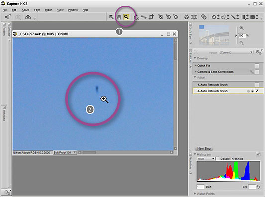 The effects of dust or foreign matter reflected in images are easily removed using the Auto Retouch Brush in Capture NX 2.