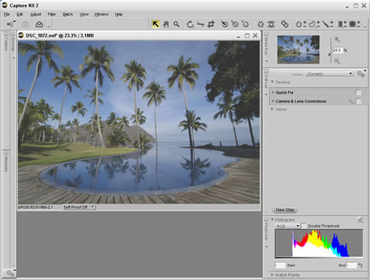 If shadows and highlights are not immediately displayed, adjust the triangle sliders, positioned just under the histogram display when the